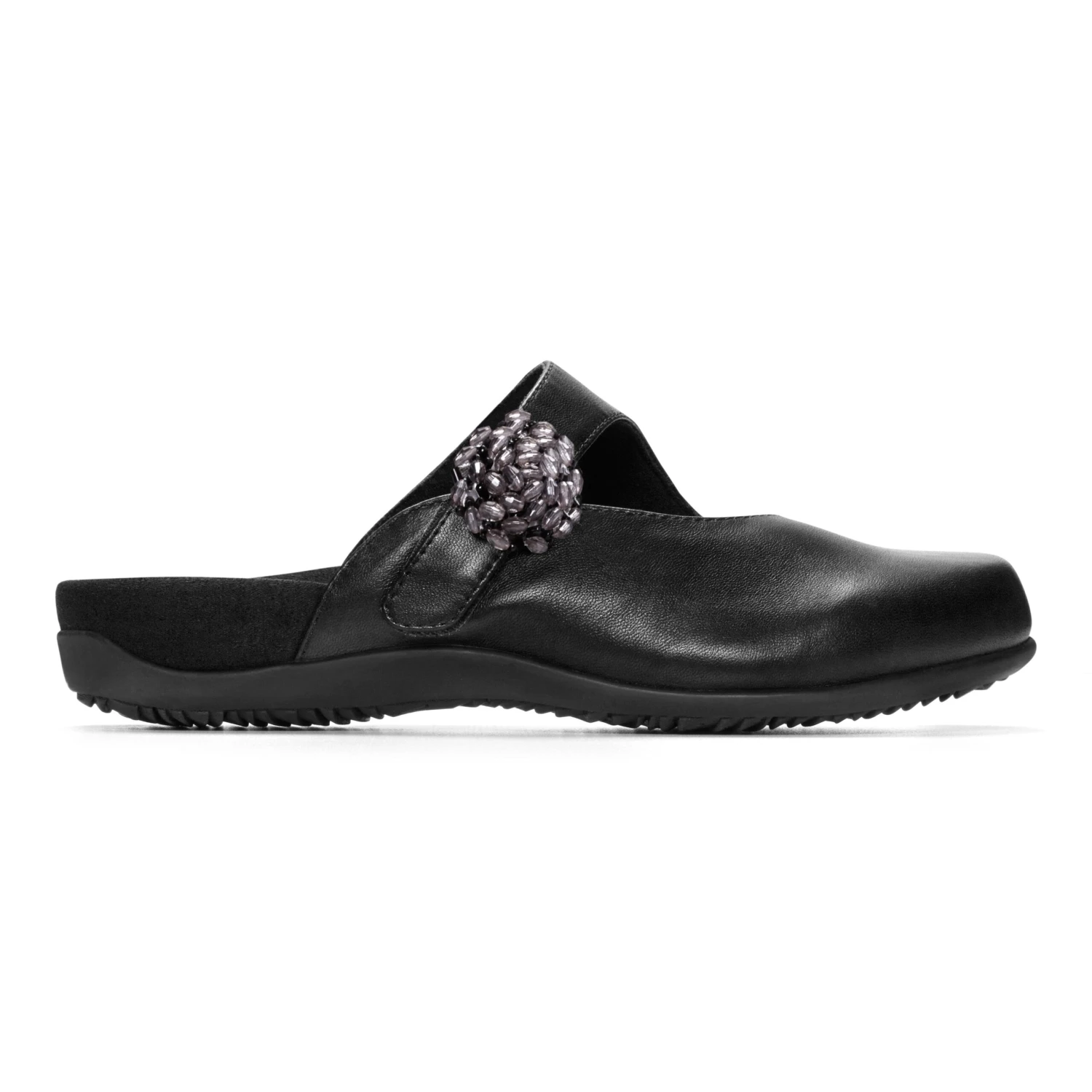 You don’t have to compromise comfort anymore to keep a feminine style with the VIONIC Joan mary jane mule. Genuine leather or suede upper with decorative jewels at vamp. Easy slip-on style with a hook-and-loop closure allows for a secure fit with plenty of adjustability. Textile lining keeps feet cool and dry. Cushioned microfiber footbed will cradle the foot in comfort and support. Flexible and lightweight rubber outsole with patterned tread. Received APMA Seal of Acceptance. to view Seal. Imported. Measu…. CONDITION: Brand New In-Box. Never been worn. BOTTOMS CONDITION: Brand New Condition INSOLES CONDITION: Brand New Condition UPPERS CONDITION: Brand New Condition.